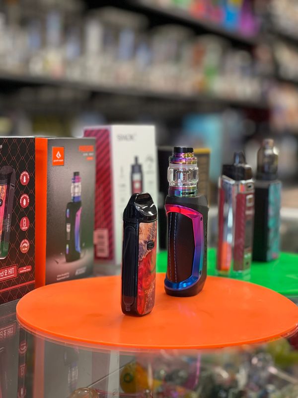 We carry simple pod style kits as well as high powered tank style mods. Our inventory is stocked with top of the line brands like Smok, Voopoo and Geekvape.